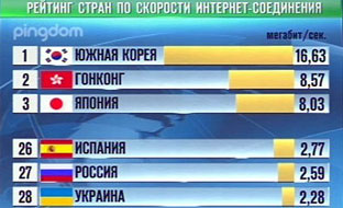 Самой быстрой Сетью традиционно могут похвастать страны Азии. Возглавила список Южная Корея, где скорость достигает 16,5 мегабит в секунду. Следом расположились Гонконг и Япония.