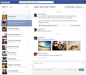 Facebook изменил интерфейс сервиса сообщений Messages, в котором традиционно слева теперь находится список друзей, справа — поле разговора. Кроме того, при смене собеседника все действия можно выполнять в одном окне.